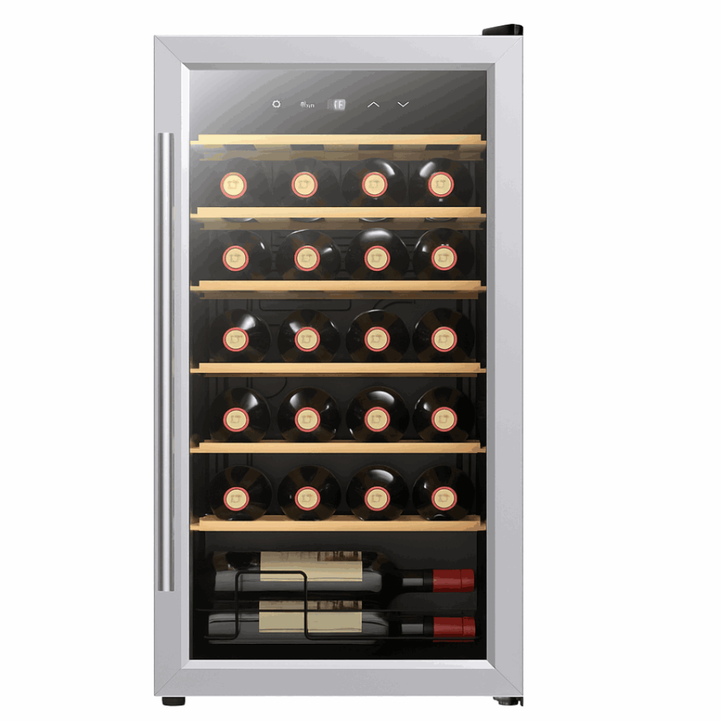 Seu painel digital de controle permite ajustar facilmente a temperatura, enquanto o sistema de climatização interna garante a circulação uniforme do ar, evitando variações que possam comprometer a qualidade do vinho. As prateleiras em madeira oferecem um toque elegante e facilitam o acesso às garrafas, e a porta de vidro com proteção UV preserva a bebida contra os efeitos da luz.